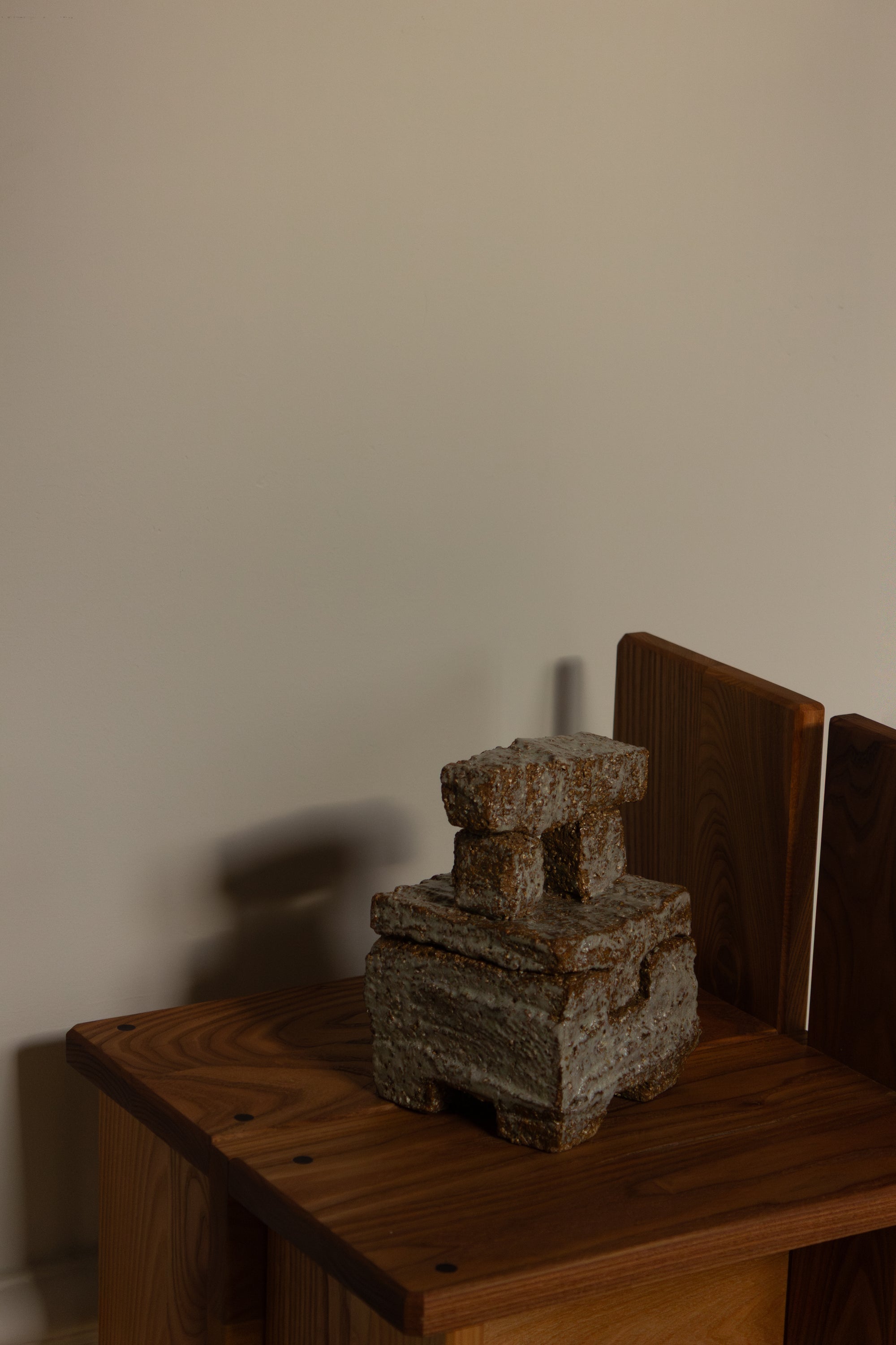 Alice Trescarte is a French ceramicist who began her practice in 2016, drawn to clay’s scope for experimentation. She approaches her field as a place for both material and technical exploration. Influences oscillate between the formal visual language of decorative arts and more primitive, brutalist forms that arise in her works. Trescarte gravitates towards the interplay between spontaneity and materiality, shaping expressive, anthropomorphic figures—evocations of totems and golems—that once fired, take the form of stone.