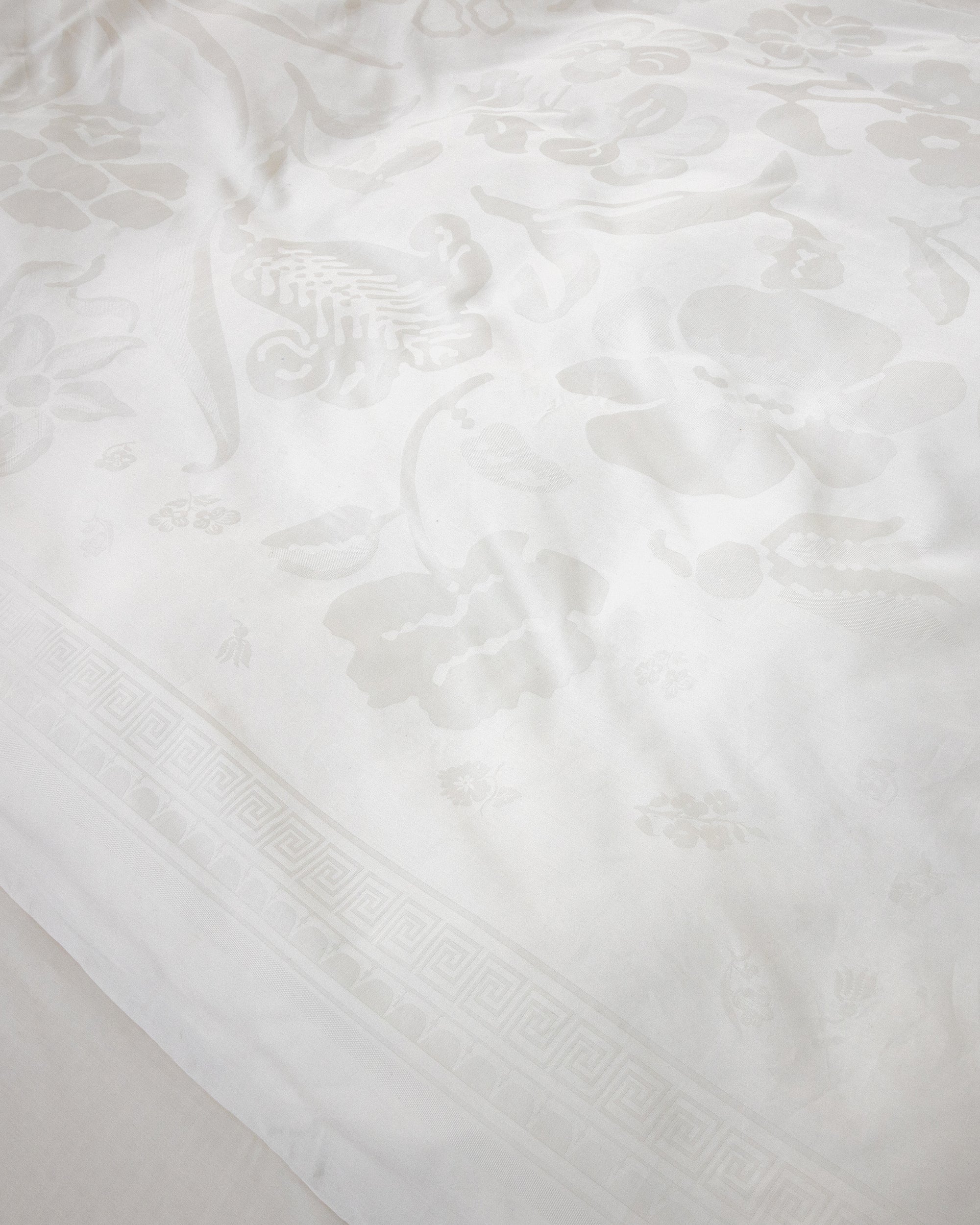 AVILLAFRANCISKA presents the Damask-woven Fountain Blossom duvet and pillow covers in White Chalk for Collection 16, transposing the delicacy of 18th Century floral-motif pattern illustrations into subtly dynamic designs, crafted from 100% organic cotton and mercerized to achieve a lustrous finish.