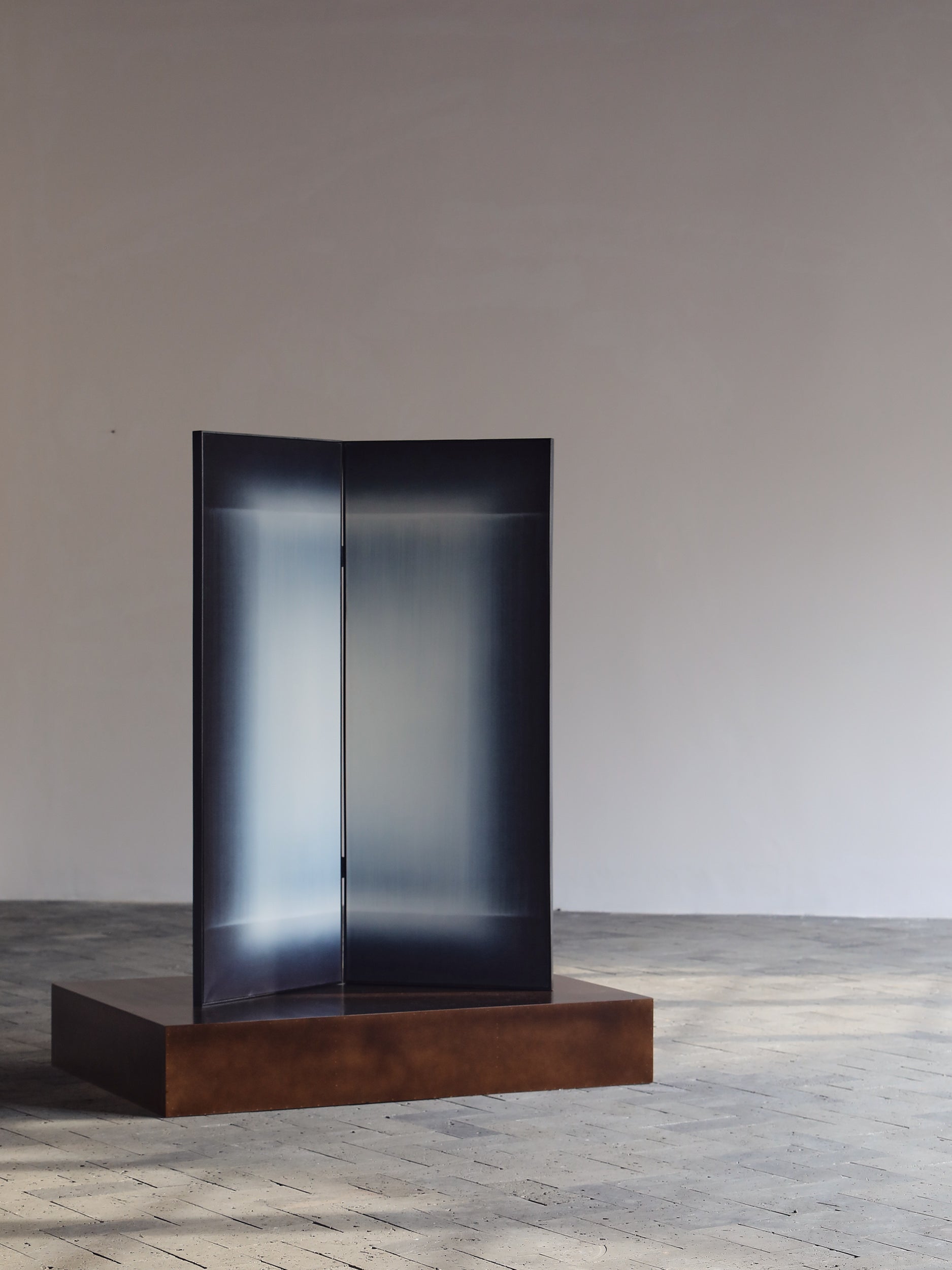 For Ark Kollekt, Carlgren presents two framed watercolours on paper, Shift and Enclosed Light, and one watercolour on paper applied onto a handmade Chinese-style folding screen, Within Limits. Potent in each work is an affinity for duality and ambiguity, with Carlgren suggesting to her viewer that we can learn much by surrendering to not knowing.